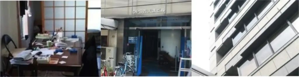 (左から創業したマンション、移転した淀屋橋の事務所、今の事務所)